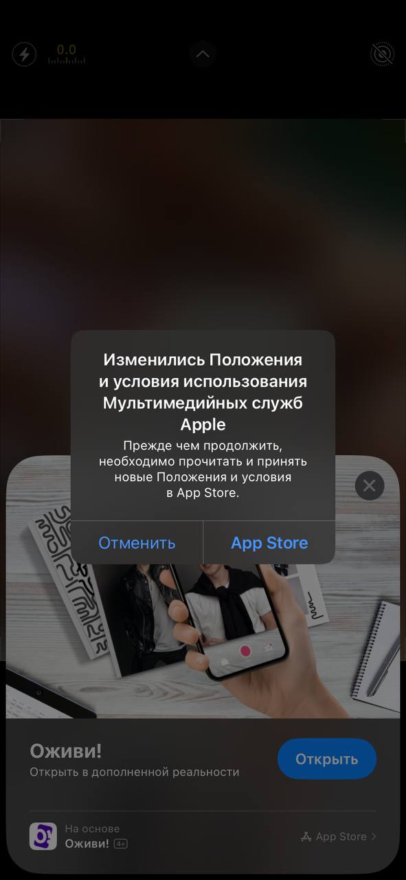 Apple периодически обновляет свои условия использования, и когда это происходит, пользователи должны принять новые условия, прежде чем продолжать использовать сервисы, включая App Store и App Clips. Сообщение появляется, потому что пользователь ещё не принял обновлённые условия.
