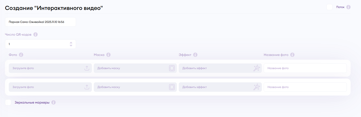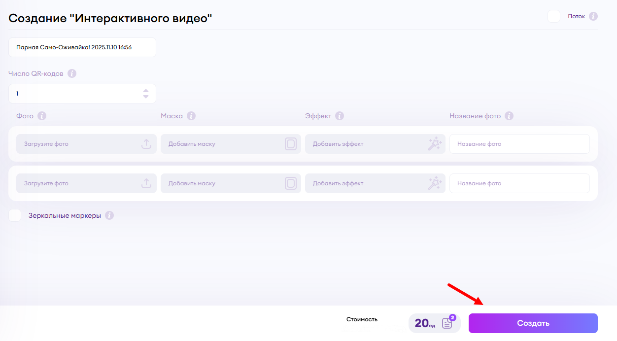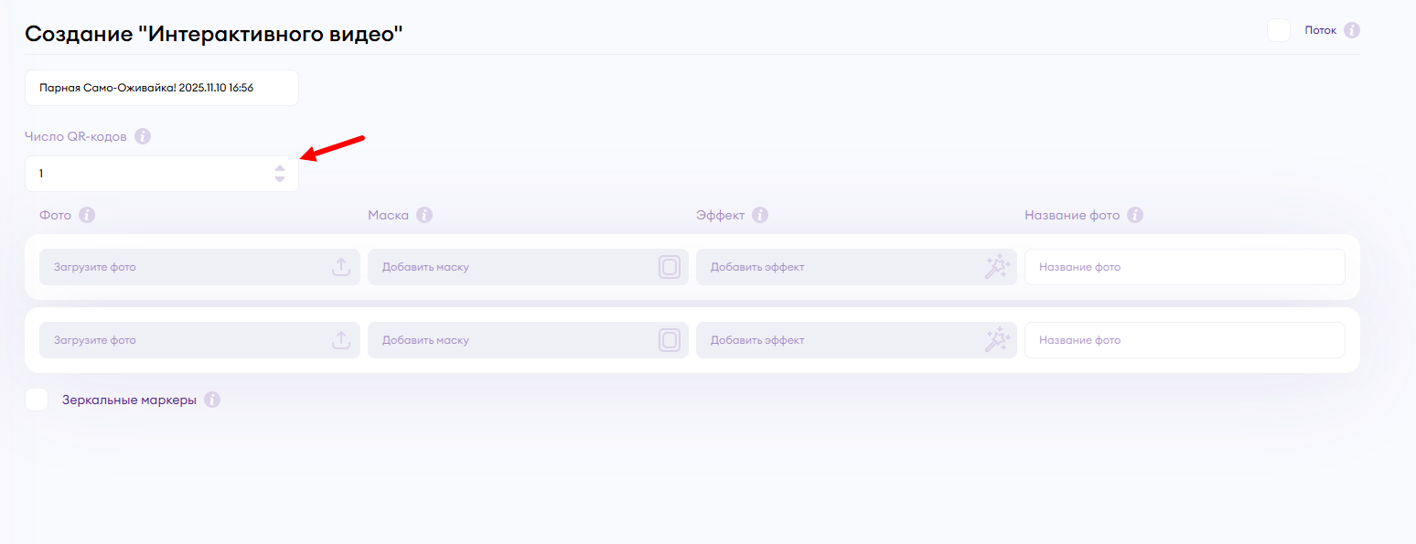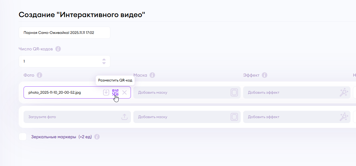 - Редактирование в Интерактивном видео: после создания заказа можно изменить только маркер. Количество кодов, маску и эффект изменить не получится. Будьте осторожны с изменением маркера, если QR коды уже у ваших заказчиков, помните, что изменив маркер вы меняете его для всех созданных QR кодов этого заказа!
